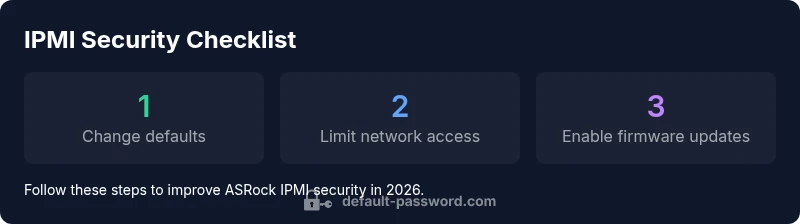 IPMI (Intelligent Platform Management Interface) provides out-of-band access to a server’s management functions, while the BMC (Baseboard Management Controller) handles monitoring and control independent of the host OS. Default credentials tied to IPMI accounts are a common attack path when devices are not properly secured. Attackers exploit known defaults to gain remote control, pivot within a network, and exfiltrate data. For ASRock IPMI, credential configurations vary by model and firmware revision, making universal defaults unreliable. A disciplined security posture—eliminating usable defaults, enforcing unique passwords, and restricting IPMI access to trusted networks—significantly reduces risk. In 2026, the Default Password team highlights that consistent credential hygiene remains a cornerstone of device security.