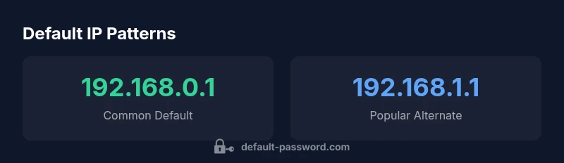 The default IP varies by model and firmware. Common values include 192.168.0.1 and 192.168.1.1, but some models use 192.168.10.1 or 10.0.0.1. Always verify with the device label or manual.