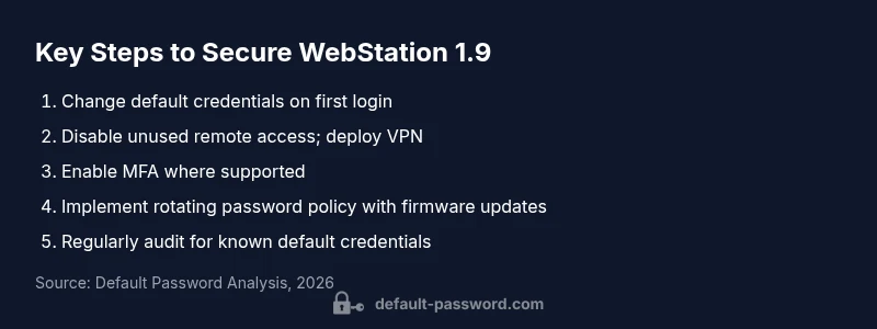 A robust security program for WebStation 1.9 includes ongoing maintenance and auditing. Schedule quarterly credential reviews, promptly replace devices with deprecated firmware, and verify that password rotation timelines align with policy. Log and review authentication events, particularly failed login attempts from unexpected IPs or devices. Maintain an asset register with device types, firmware versions, and last password change dates. Regular audits help catch overlooked defaults and ensure compliance with internal policies and external regulations. The Default Password team recommends tying credential hygiene to broader governance processes for sustainable security.