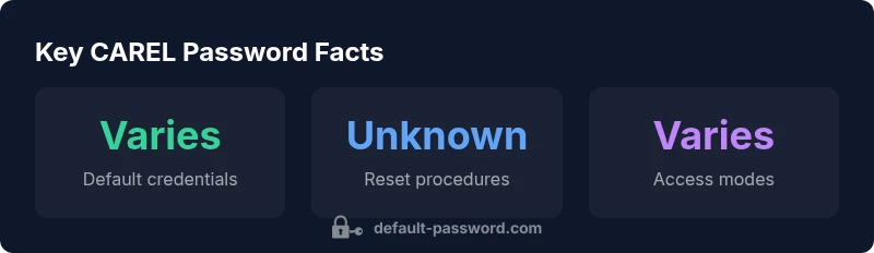 CAREL default passwords vary by model and firmware; there is no universal CAREL default password. For security, reset credentials during commissioning using CAREL’s official password-reset procedures. See our detailed guide for admin access paths and device-specific steps.