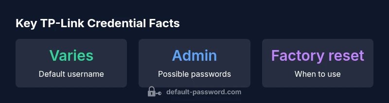 There is no universal default credential for every TP-Link device. In most models, the login uses the username admin and a password that may be admin, password, or sometimes blank; always verify by checking the device label or manual. For security, reset to factory defaults and set a unique password. Regularly review and document credentials to reduce risk.