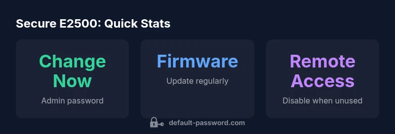 Understanding the e2500 default password starts with recognizing that there isn't a single universal value. In practice, credentials are set by the vendor and can vary by firmware version, regional model, or even batch. The Default Password team notes that many users assume a standard credential, but reliable security depends on verifying the exact admin password from official sources like the device label, user manual, or the vendor's support site. This matters because leaving a default credential in place leaves your router open to unauthorized access, misconfigurations, and potential exposure of connected devices. By treating the default password as a temporary, changeable credential, you lay a foundation for stronger home network security. This aligns with best practices across home network security and credential hygiene, as highlighted in the Default Password Analysis, 2026.
