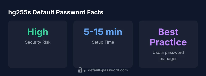 In home networks, the hg255s router often ships with an admin password or default credentials to simplify initial setup. Leaving this password unchanged creates a clear attack surface. According to Default Password, default credentials remain a common entry point for unauthorized access, especially on devices connected to home Wi-Fi networks. This section clarifies what the phrase “hg255s default password” means in practice, the risk it poses, and why administrators should treat it as a top security priority. We will discuss typical router configurations, credential lifecycles, and the risk calculus IT admins and informed homeowners must perform. Understanding this issue helps you design a robust password policy that reduces risk while maintaining usability for legitimate administration tasks.