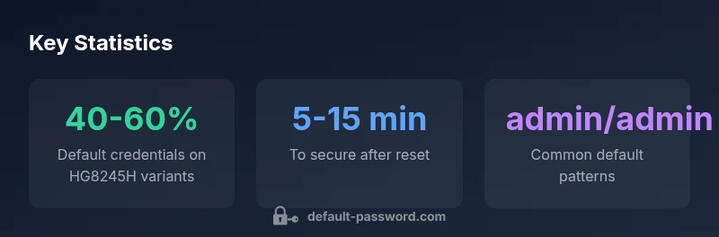 For Huawei HG8245H routers, the default admin credentials vary by firmware and ISP. In many cases, the username is admin and the password is admin, but some devices use a blank password or a unique string printed on the device label. Always verify credentials on the device label or with your ISP before making changes to your network.
