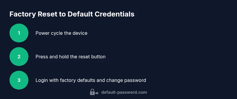 If you cannot log in, perform a factory reset to restore default credentials. Use the recessed reset button or the procedure from the manual, holding as required until the status LEDs indicate completion. Expect the device to reboot and return to an initial configuration state.