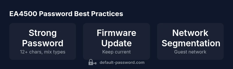 Once you regain access to the EA4500's web interface, navigate to the Administration or Security section. Change the admin username and password to a strong, unique combination. Use a password with at least 12 characters, including uppercase, lowercase, numbers, and symbols. Avoid common phrases or reused passwords across sites. Save the changes and log out, then log back in with the new credentials to confirm they work. If your router supports a password manager or a generated passphrase, consider using one to maintain strong and unique admin credentials for the EA4500.