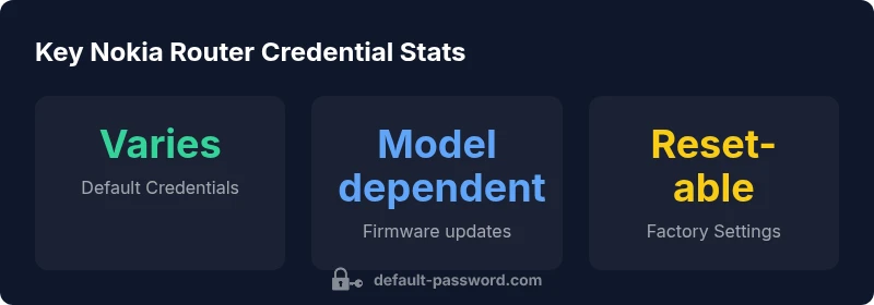 Nokia produces a range of routers and gateways for home, SMB, and enterprise use. Each model can have a different default username/password pair, or sometimes a different login method altogether, depending on firmware revisions and whether the device is ISP-provisioned. In practice, this means there isn't a one-size-fits-all credential. The best approach is to verify credentials against the model's label, consult the official user guide, and, when in doubt, perform a legitimate reset to restore factory settings. This variance also underscores the importance of a consistent security policy: require credential changes on first login and after any reset. The Default Password Analysis, 2026 notes that model-specific guidance helps minimize accidental exposure when administrators manage mixed fleets of Nokia devices.