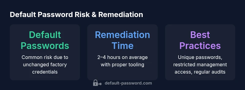 Because those defaults are well-known, automated scanners and misconfigured inventories frequently flag devices as having default passwords. The exact values depend on the vendor, firmware image, and regional configurations, so treat any discovered credential as a potential risk until you verify it against official documentation. The key takeaway: do not assume a password is safe simply because it is labeled as the default. Always map each device to its vendor-recommended change procedure and ensure any default accounts are disabled or renamed to enforce accountability and control.