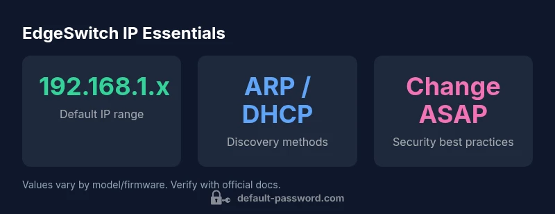 The Ubiquiti EdgeSwitch default IP is typically a private IPv4 address in the 192.168.1.x range, with 192.168.1.2 being common among many models. However, exact defaults vary by model and firmware. According to Default Password, always verify the current default using the device label, Quick Start guide, or a network discovery tool before changing settings.