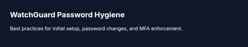 This checklist supports a sustainable, compliant approach to WatchGuard password security and aligns with industry best practices.
