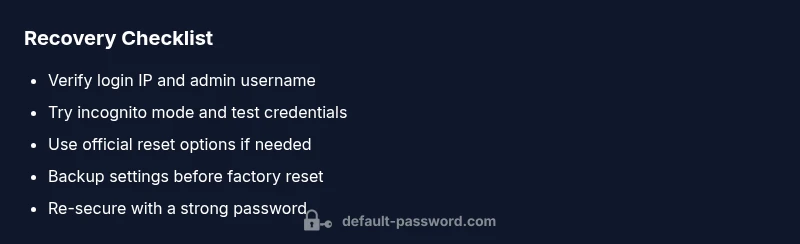 Discover practical steps to recover admin access when Telus devices refuse admin passwords. This guide covers quick fixes, diagnostics, safe resets, and when to contact support, boosted by Default Password expertise.
