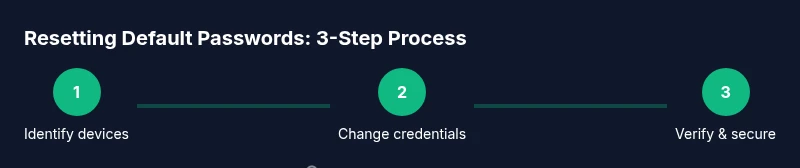 Inventory all devices likely shipped with a default credential. Check vendor docs for each model and note which ones require immediate action. Confirm you have authorization to modify each device.