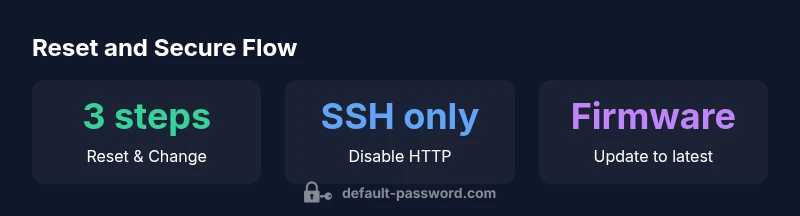 | Post-reset security | Change admin password, enable SSH, update firmware | Disable unneeded management protocols |