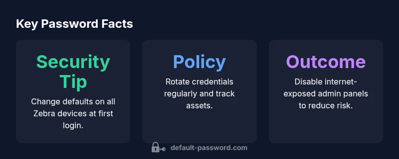 Zebra label default password varies by model and firmware; there is no universal credential. The essential fact is that most Zebra devices ship with a default credential that can be exploited if left unchanged. For security, change defaults immediately via the device web UI, admin console, or official reset procedures.